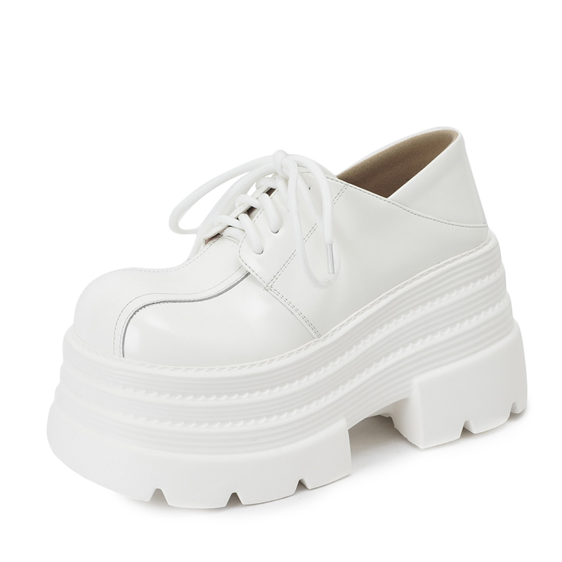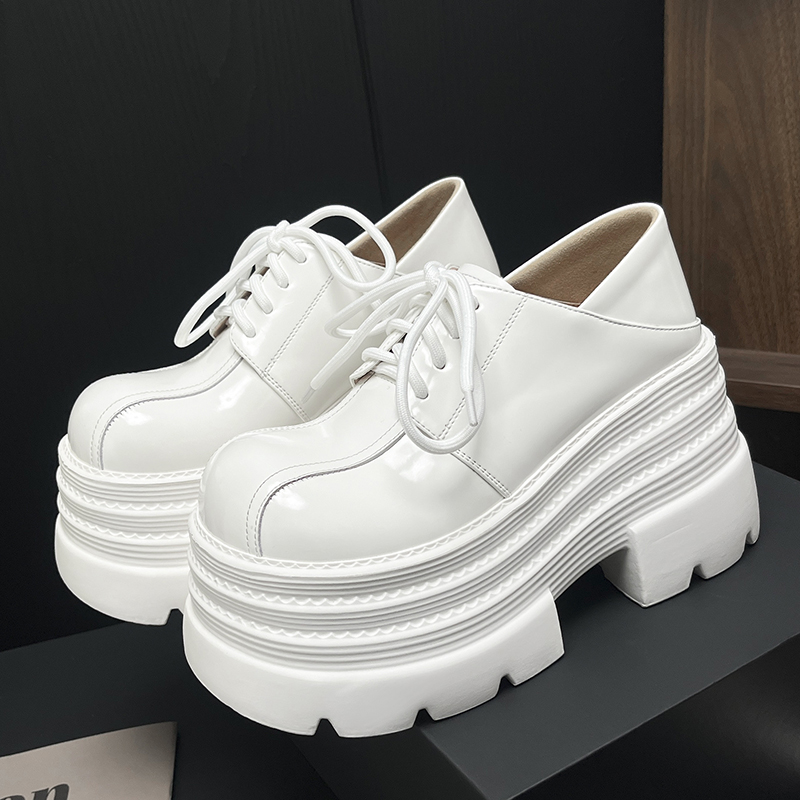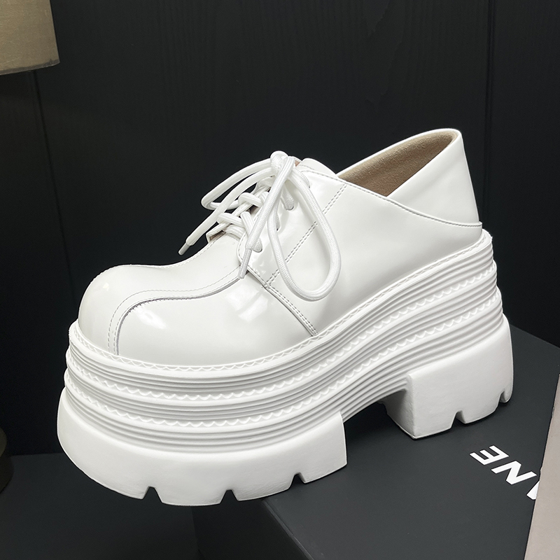 低帮鞋春季新款亮皮女鞋厚底增高休闲鞋真皮单鞋绑带松糕跟乐福鞋