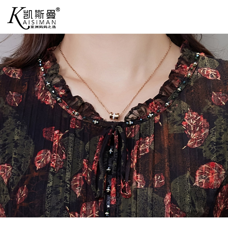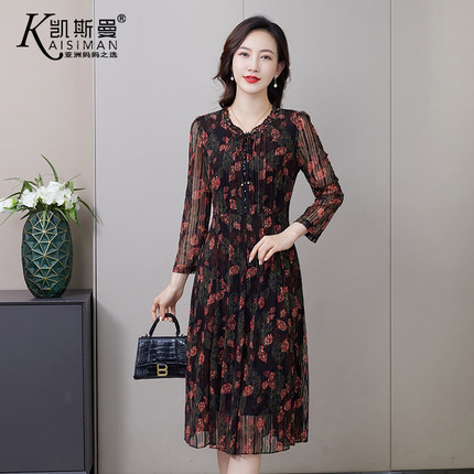 凯斯曼2025秋新款妈妈台湾纱连衣裙春装中老年高贵女装过膝22833