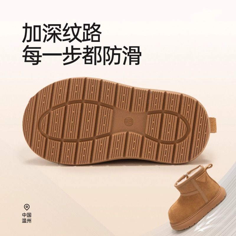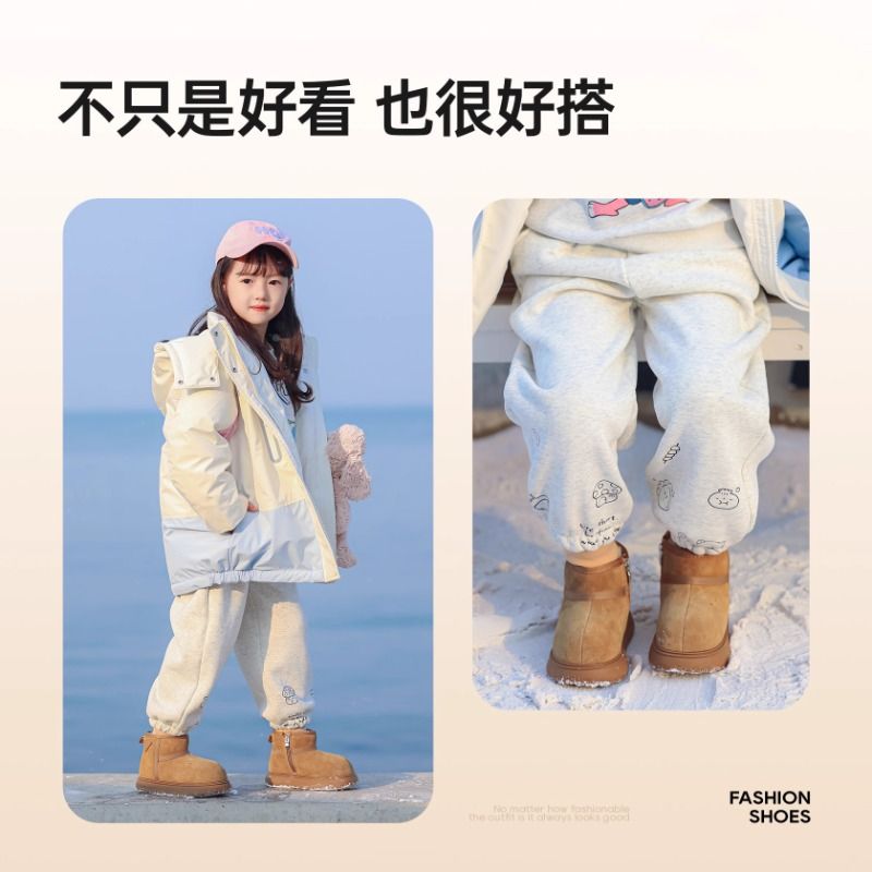 巴布豆女童雪地靴2025冬新款男童棉鞋加绒儿童鞋子防水加厚雪地棉