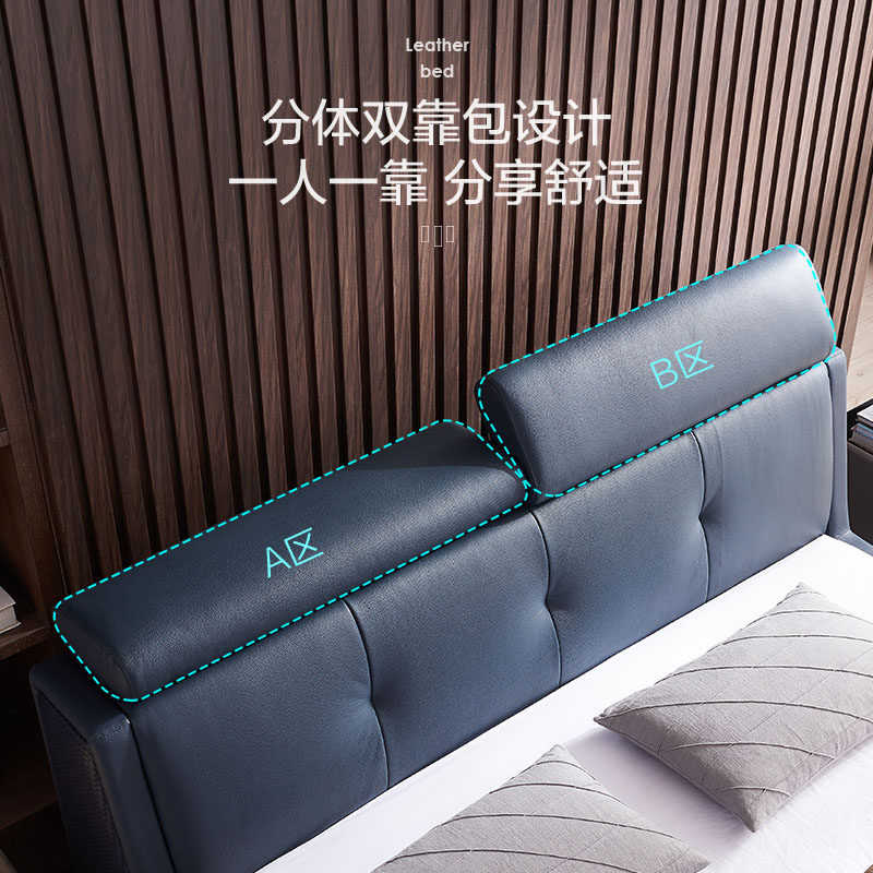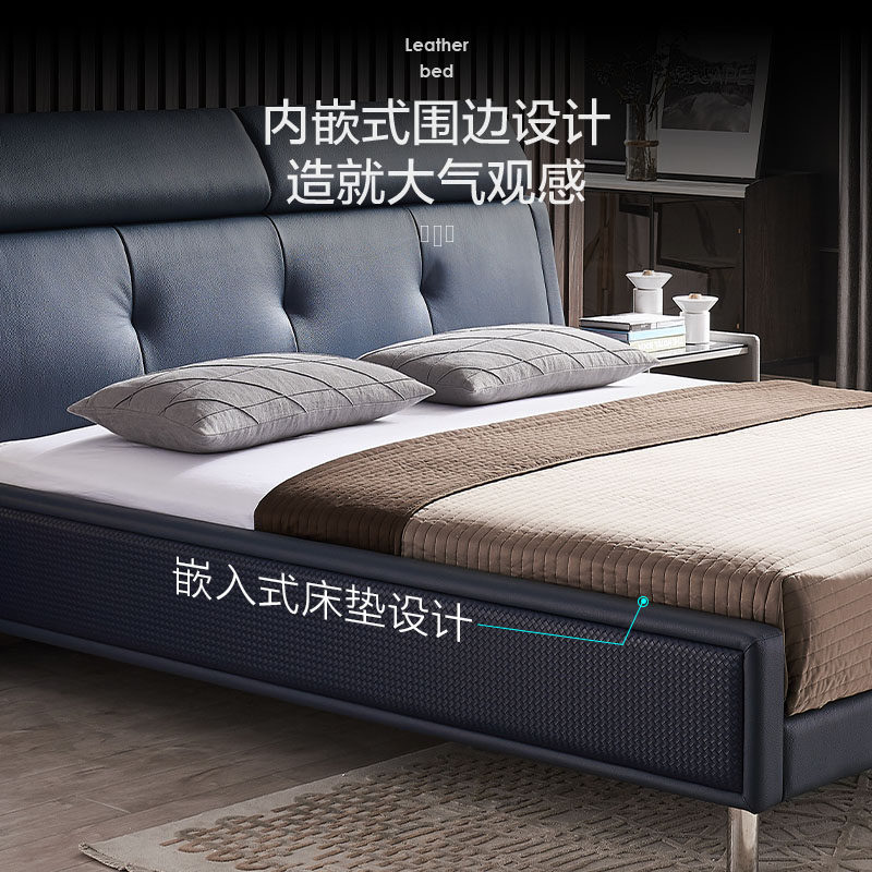 慕思皮床真皮床现代简约双人床轻奢风主卧大床多功能软包床慕斯
