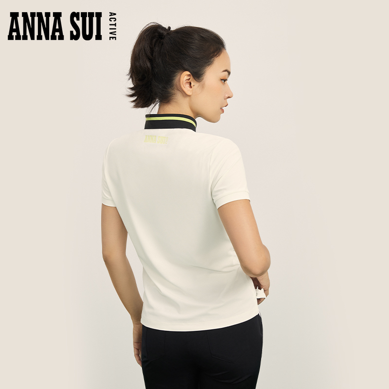ANNA SUI安娜苏运动 俱乐部系列 高尔夫修身POLO撞色短袖T恤上衣