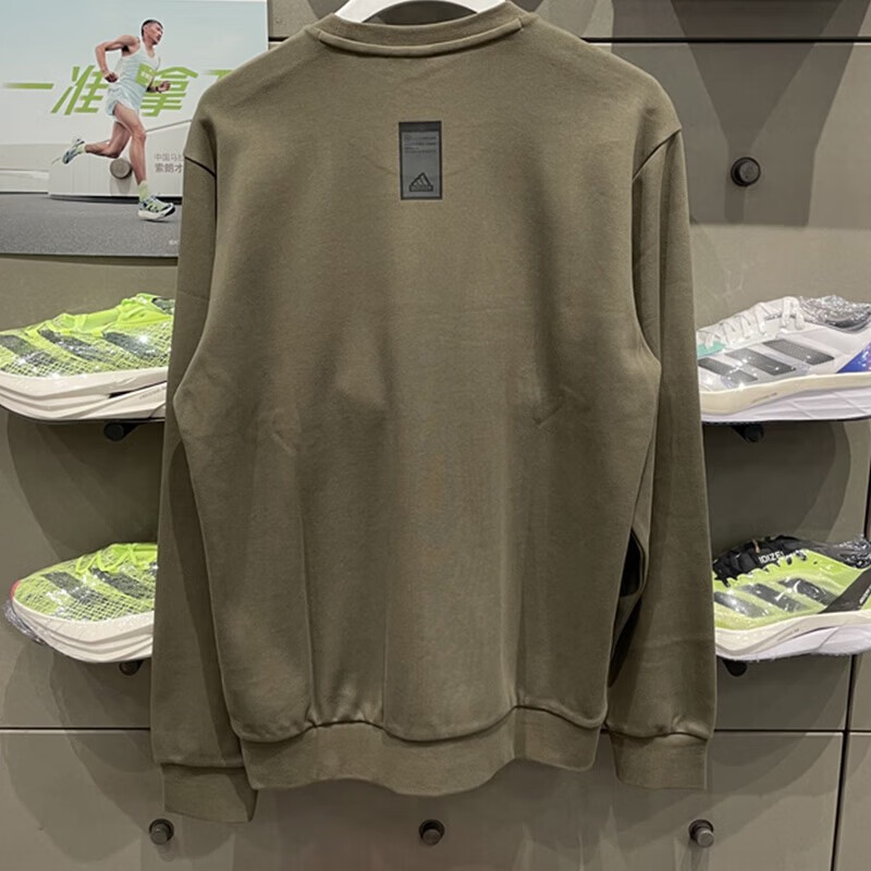 阿迪达斯橄榄绿卫衣男装春新款健身训练运动服外套休闲圆领套头衫