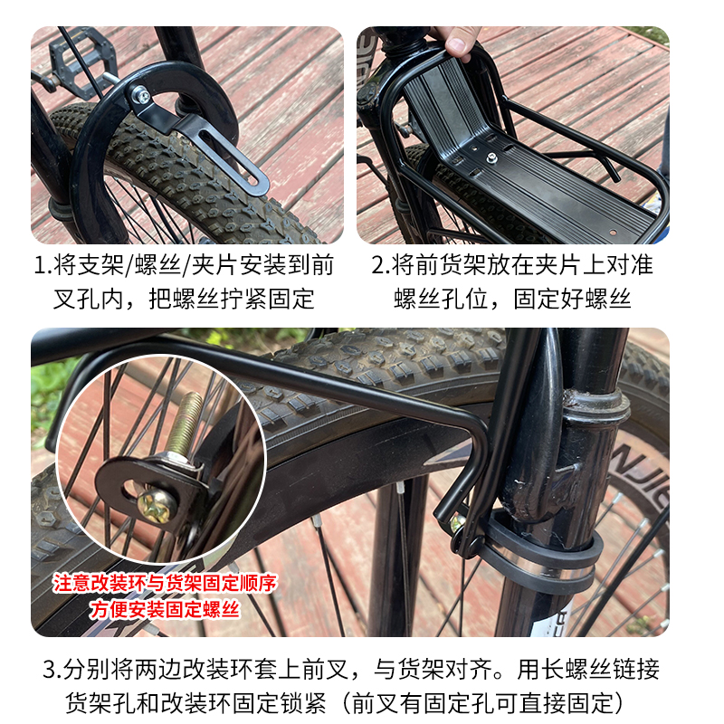 山地自行车铝合金前货架单车前叉钢制车筐载物车篮V刹碟刹货架