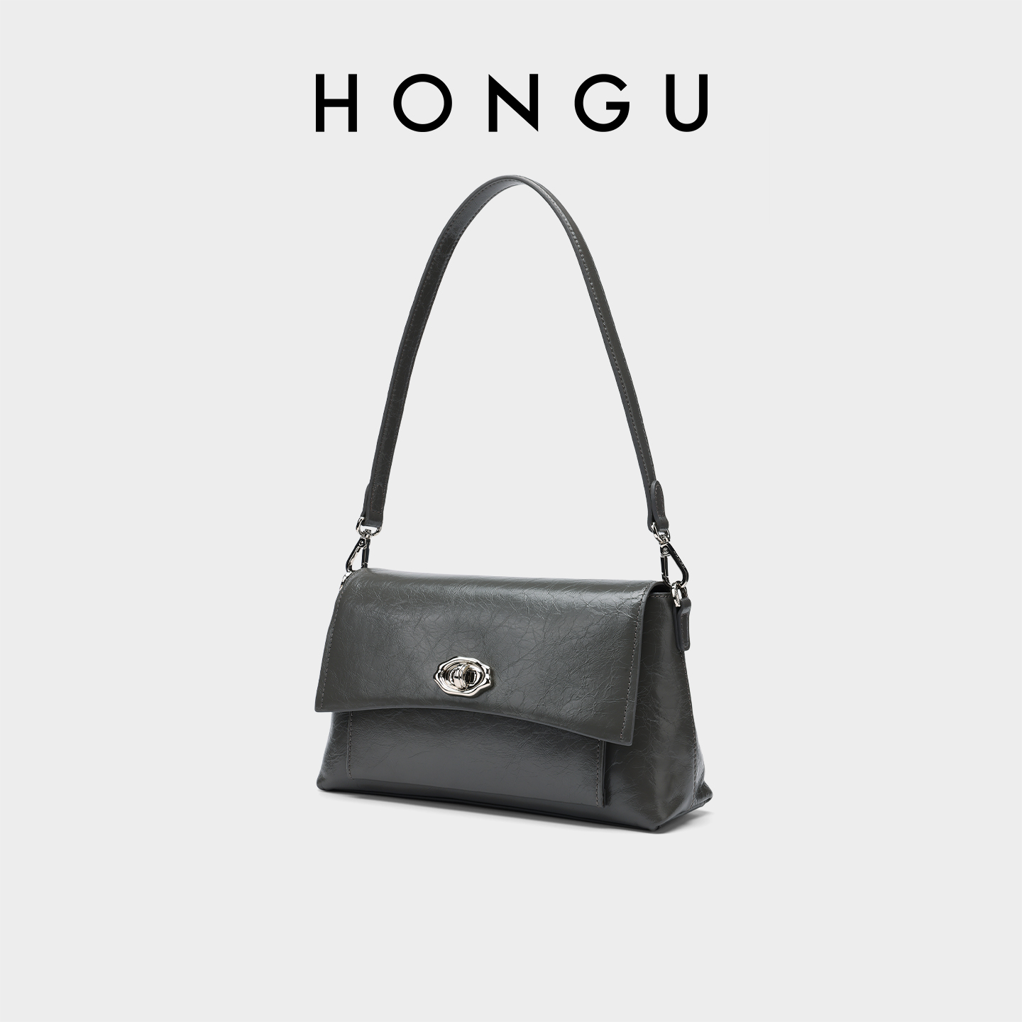 红谷包包2025新款油蜡真皮单肩腋下包时尚高级感斜挎小方包女士包