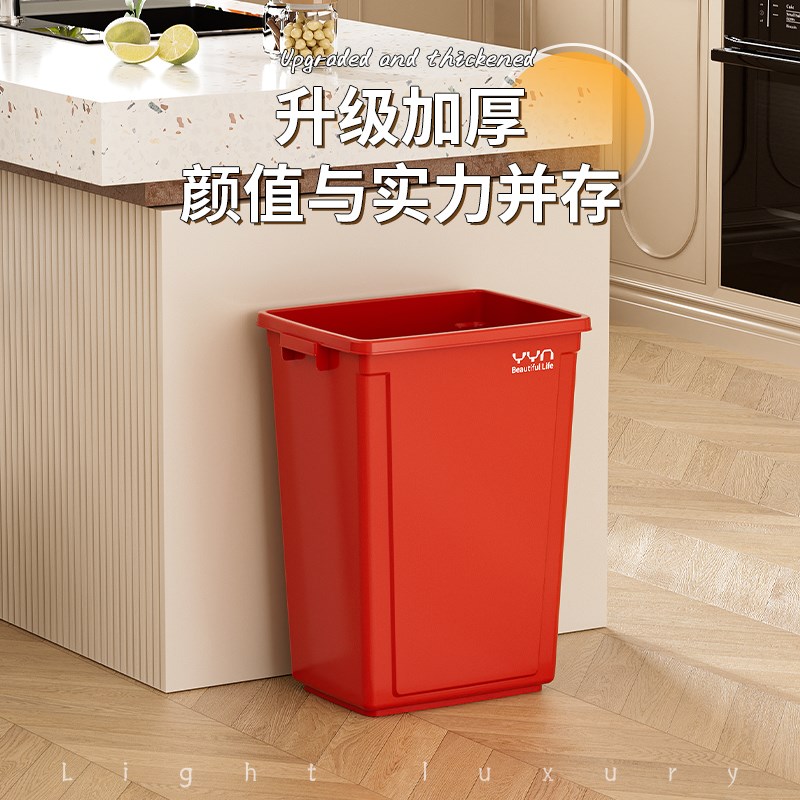 红色无盖长方形大容量垃圾桶家用超大厨房卫生桶餐饮大号商用桶