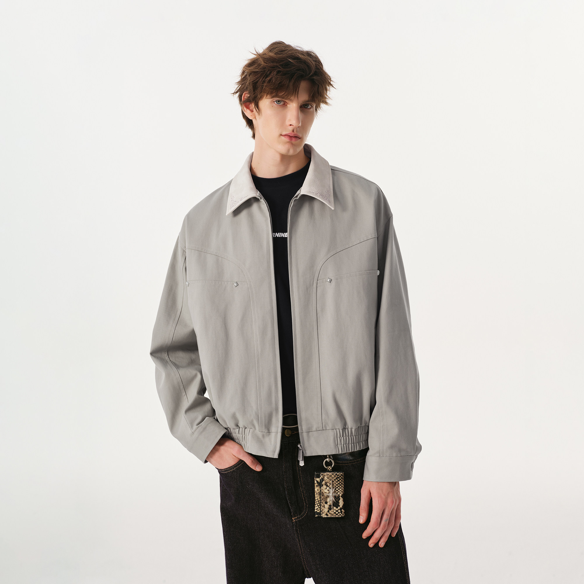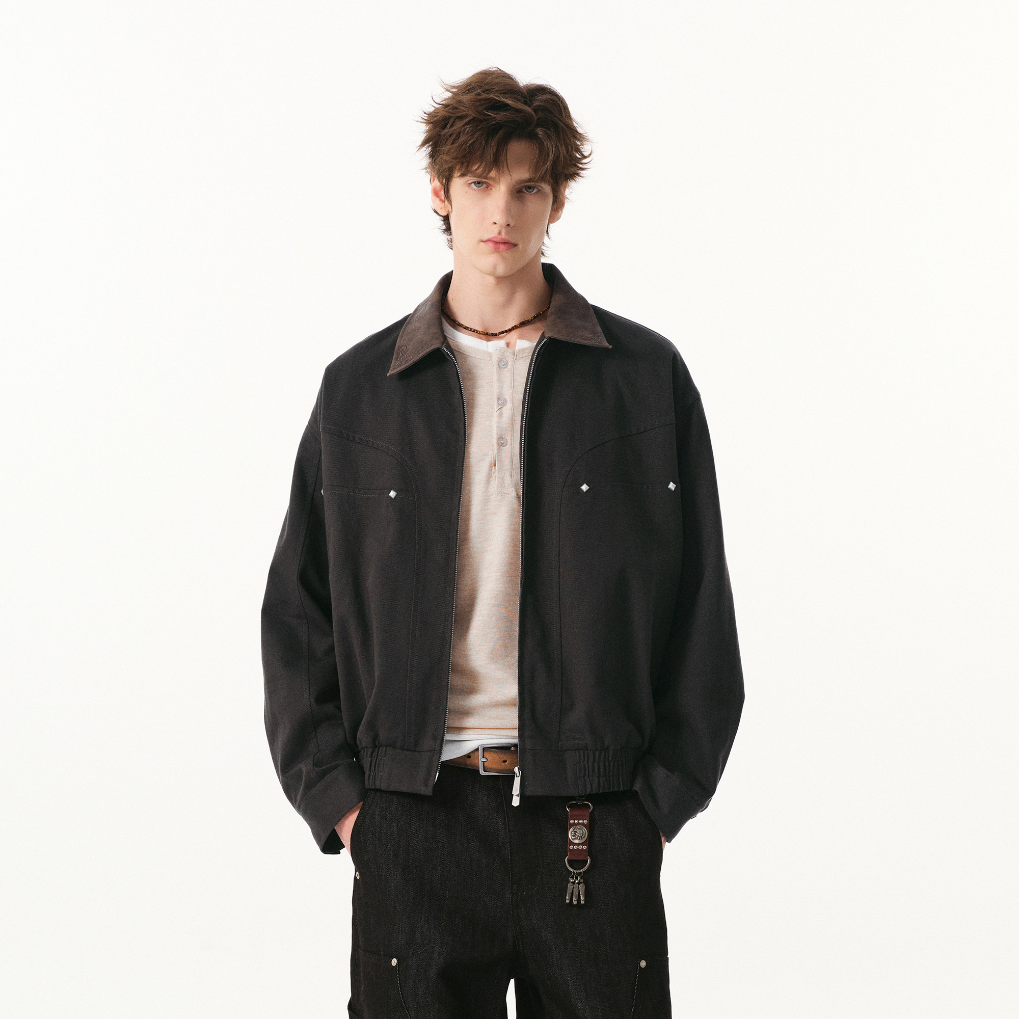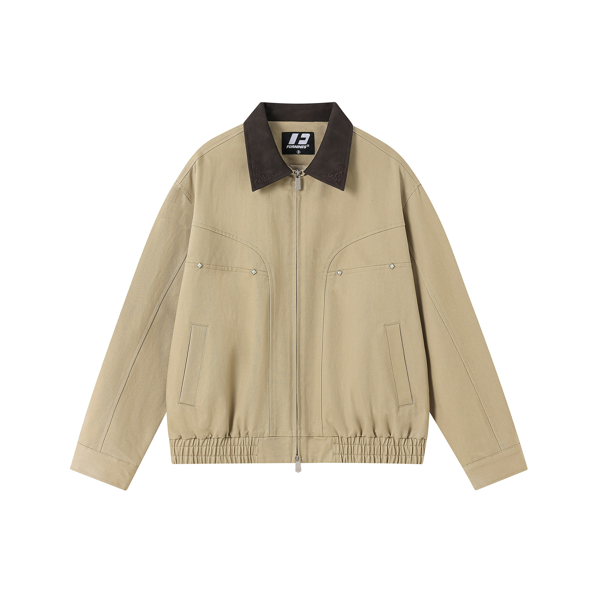 FORNINES莱赛尔天丝巴恩风工装外套男女宽松撞色翻领底特律夹克衫