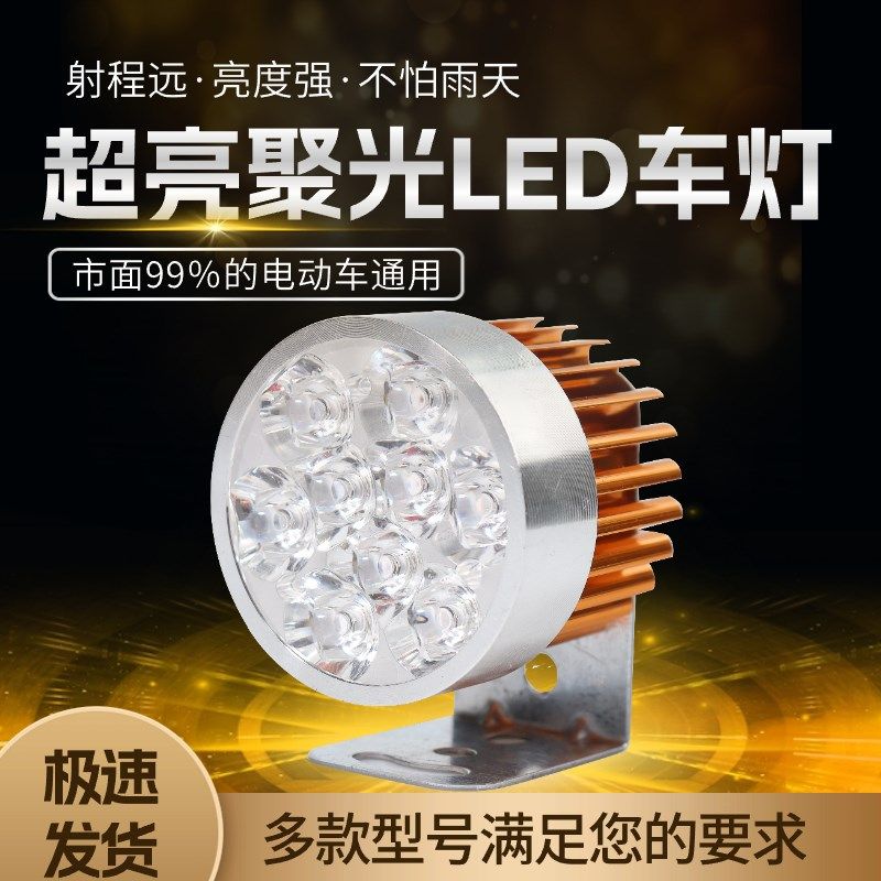电动车灯超亮led大灯改装强光外置三轮车灯泡铺路灯12v摩托车射灯