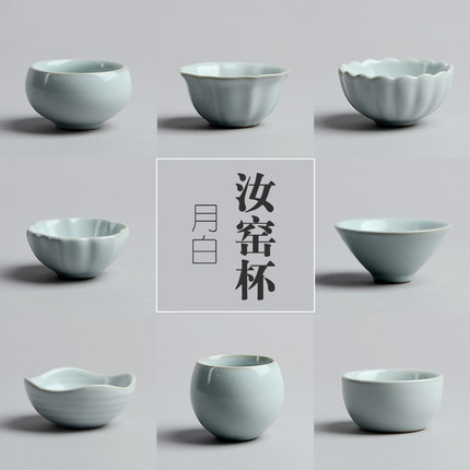 月白汝窑茶杯单杯可养开片主人杯个人品茗杯汝瓷陶瓷功夫茶具茶盏