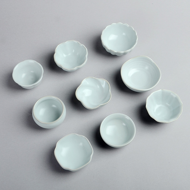 月白汝瓷茶杯品茗杯汝窑开片可养
