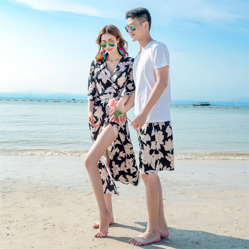 沙滩裙情侣装套装连衣裙长裙海边度假两件套三亚拍婚纱照旅游穿搭