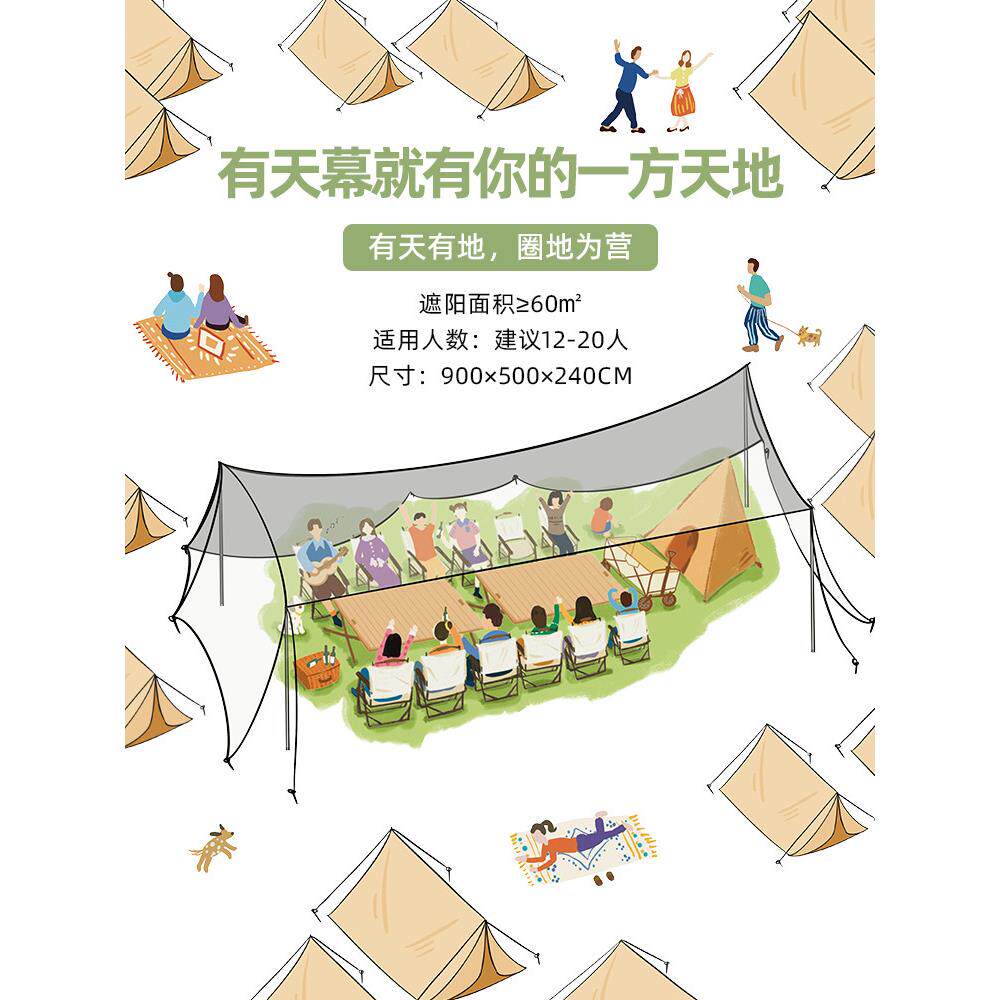 旗速户外双峰天幕帐篷营地露营大型黑胶防晒天幕大遮阳棚防风凉亭