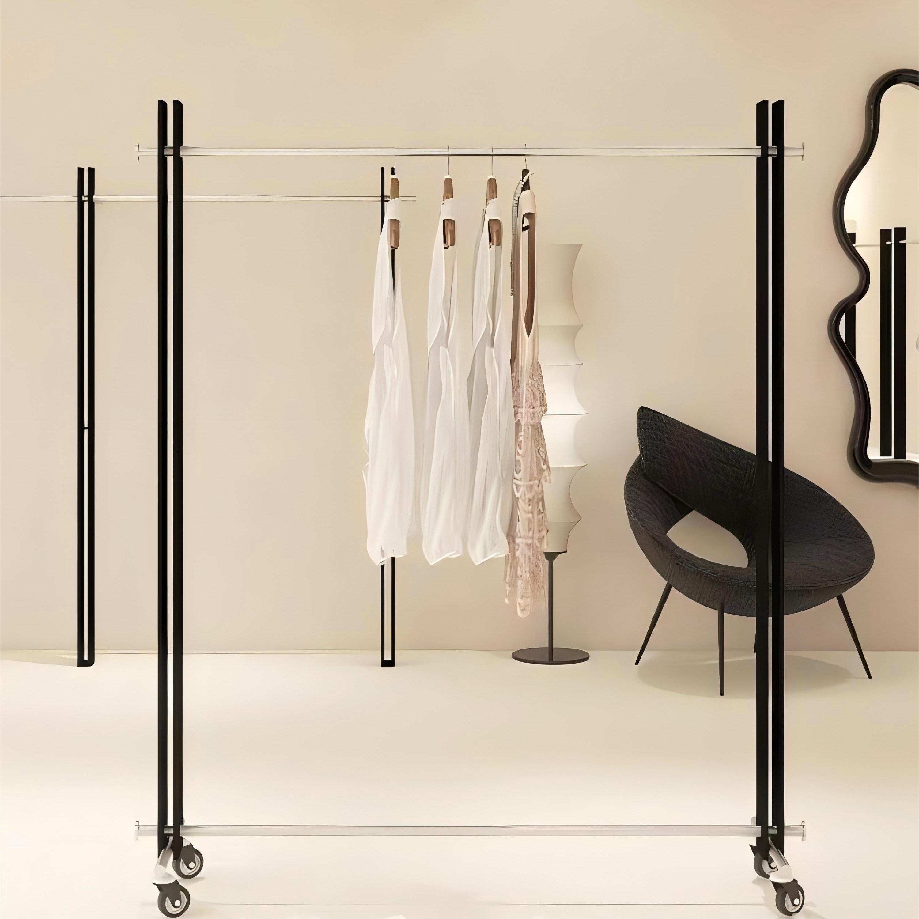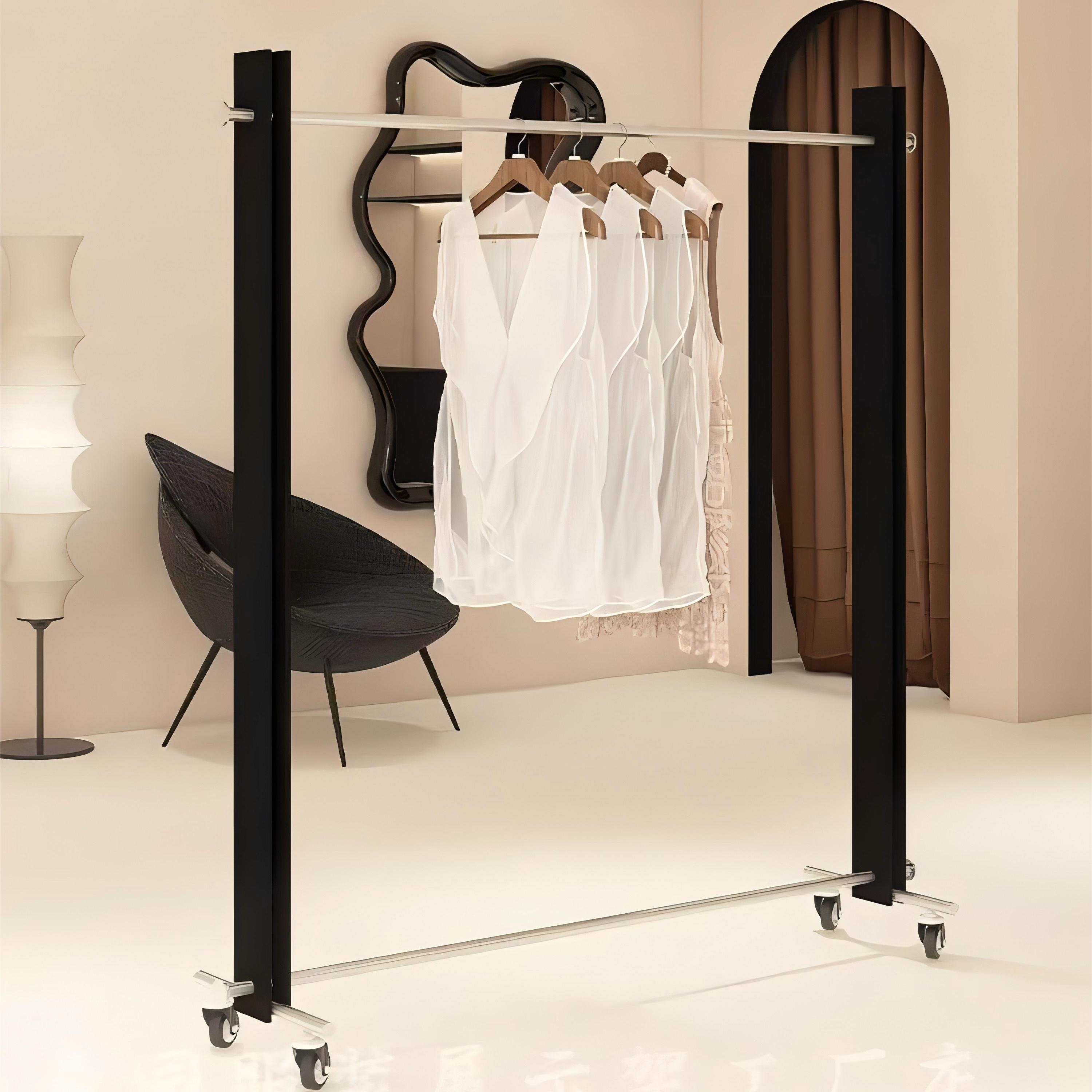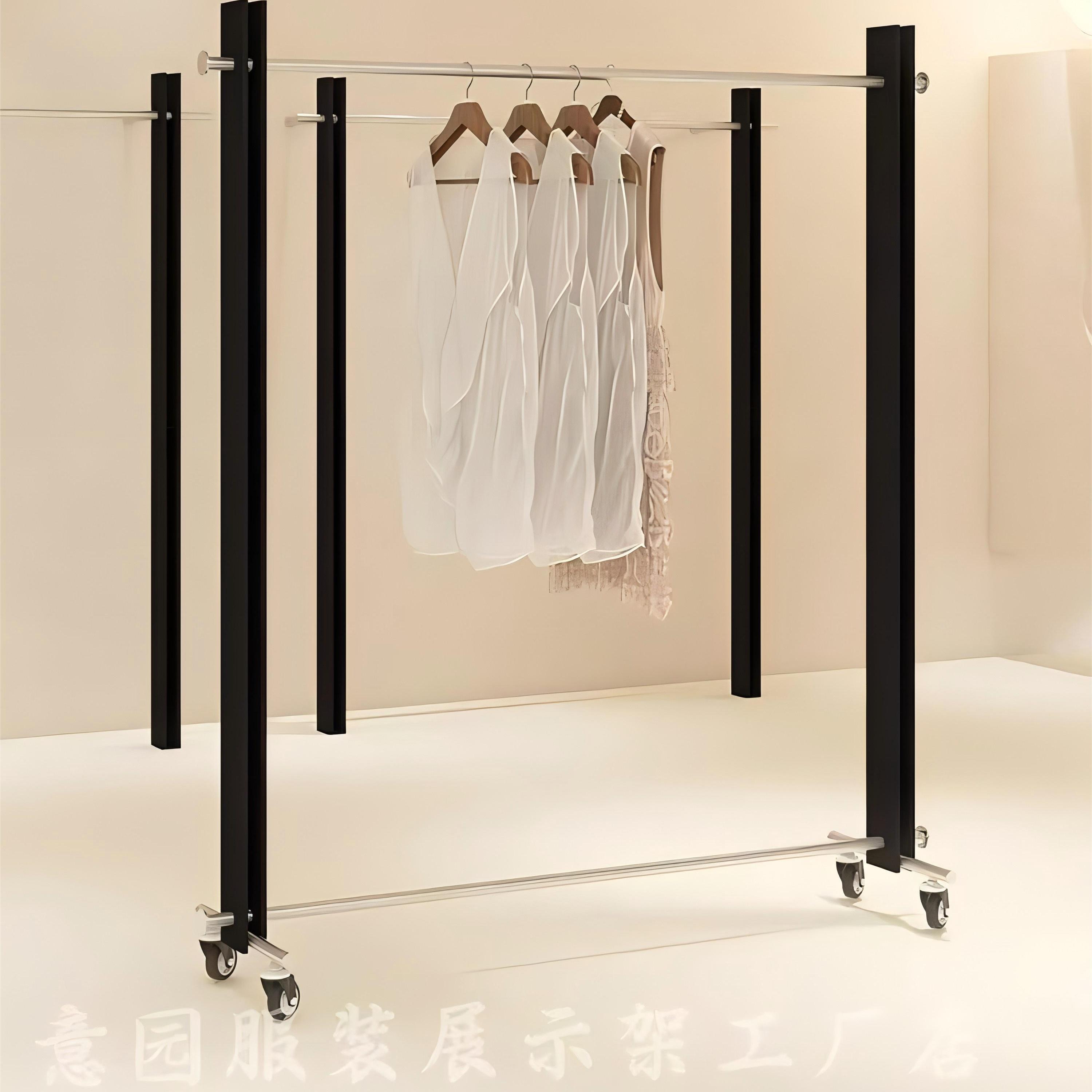 服装店展示架黑色简约不锈钢落地式侧陈列架女装店衣服挂衣架新款