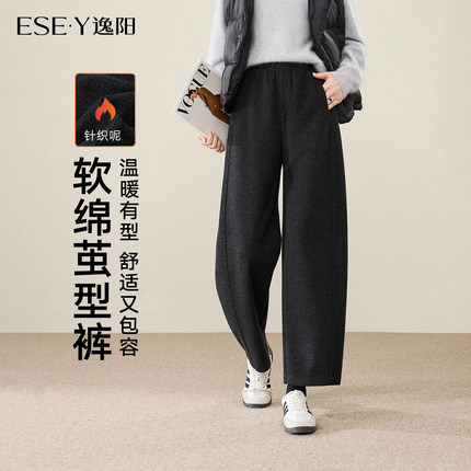 逸阳毛呢茧型裤女2025年冬新款高腰显瘦九分加绒哈伦宽松休闲裤子