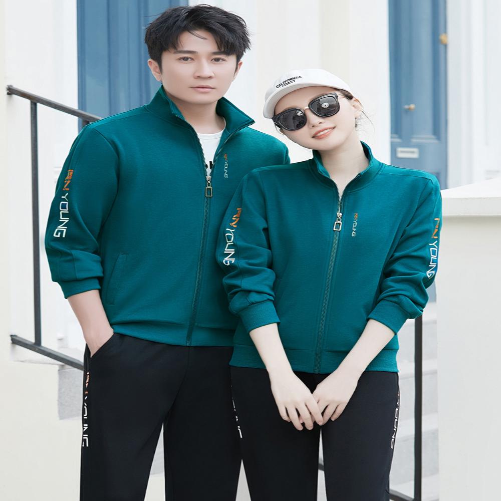 春秋时尚潮流情侣白色运动套装男女大码长袖外套锻炼跑步服三件套