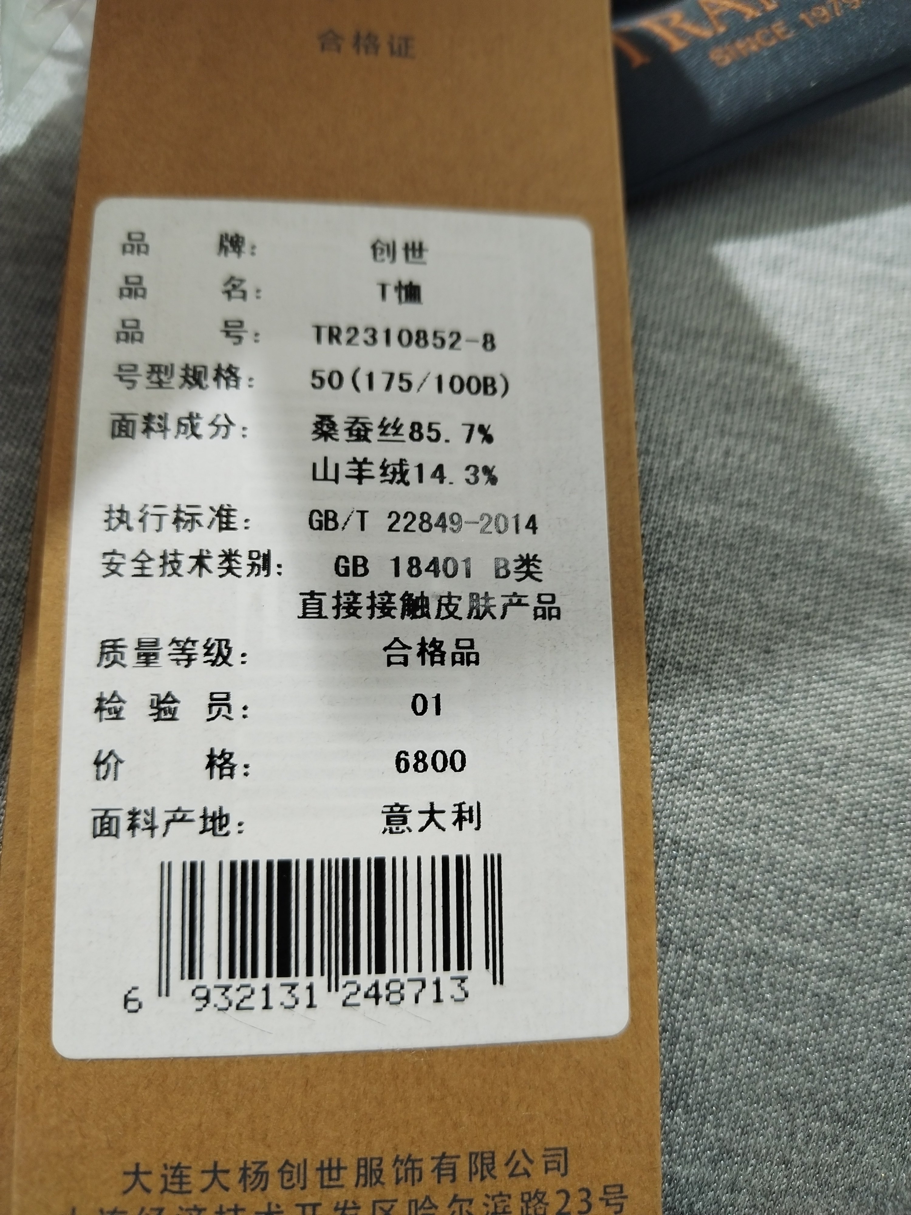 TRANDS春款T恤.意大利BOTTO GIUSEPPE出品的"丝、绒"混纺材质面料