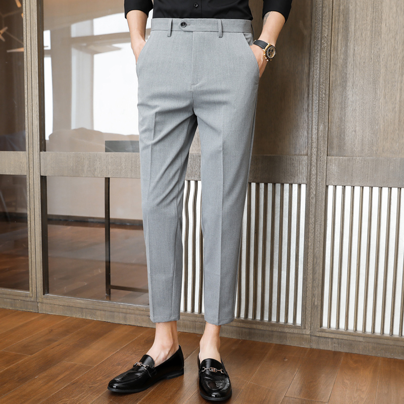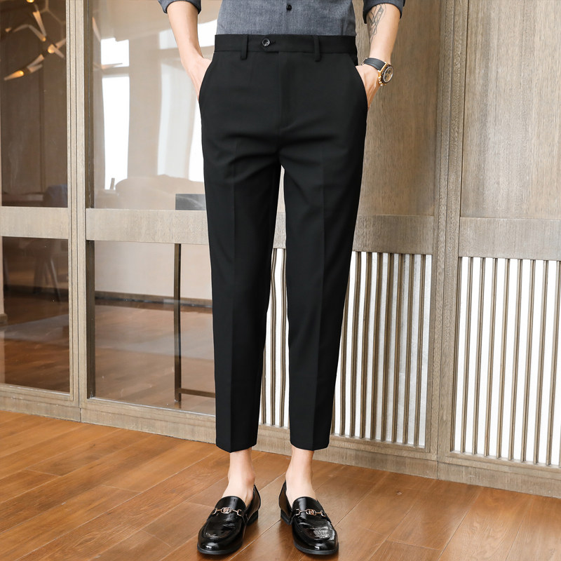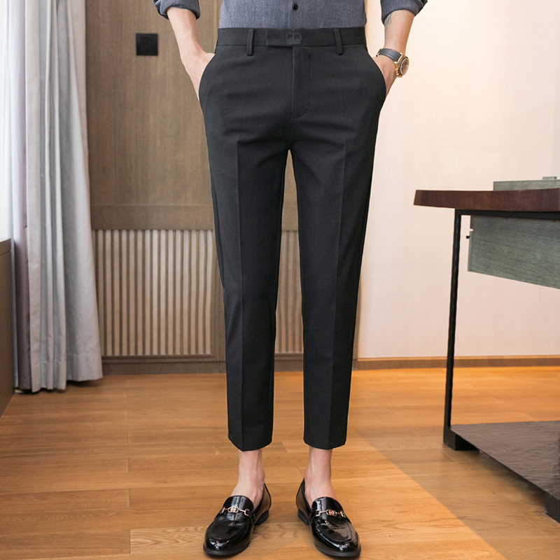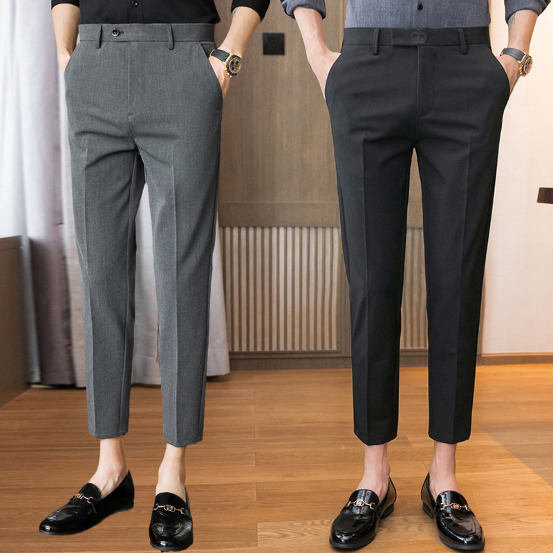男裤子春秋季休闲商务八分西裤弹力修身小脚正装9分8分九分裤男士