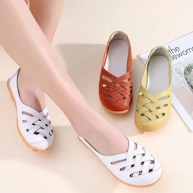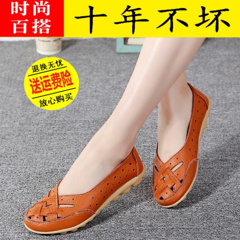 2024跨境真皮中老年妈妈鞋牛筋底防滑软皮工作鞋软底透气凉鞋女鞋