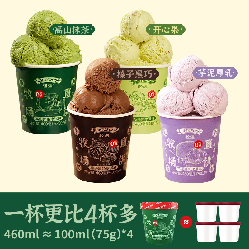 轻遇0蔗糖牛乳冰淇淋大桶装抹茶冰激凌开心果香草雪糕冷饮下午茶