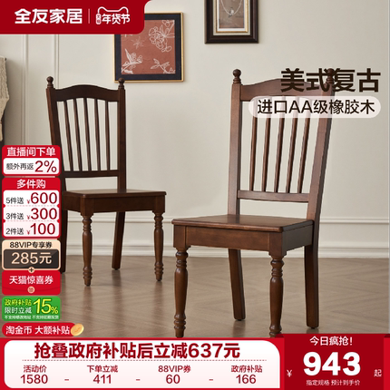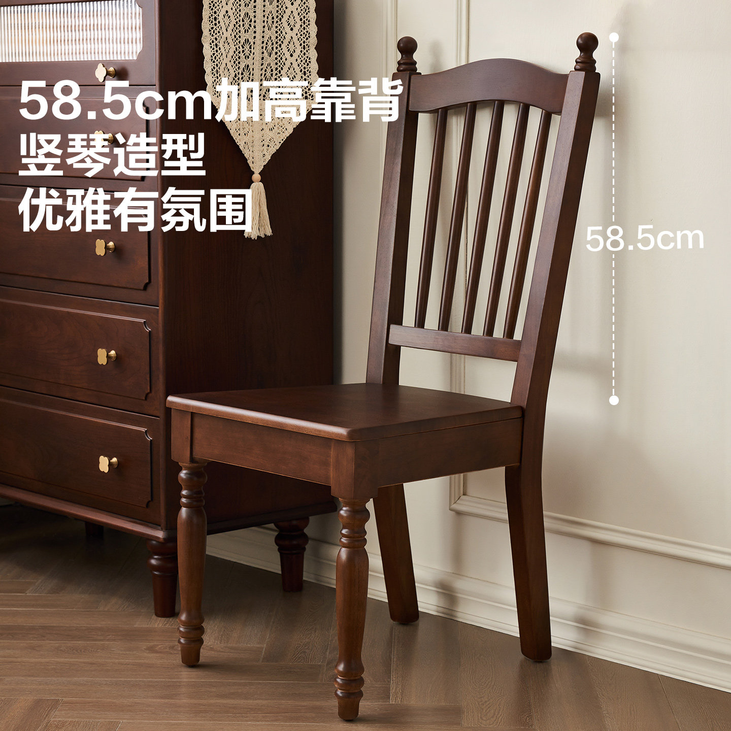 全友家居美式复古风实木餐椅新款客厅家用靠背椅子书房书椅办公椅
