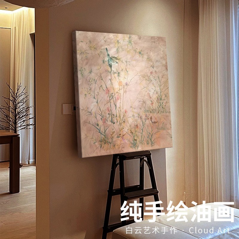 宋代美学新中式花鸟图客厅书房抽象纯手绘油画玄关中古风装饰挂画