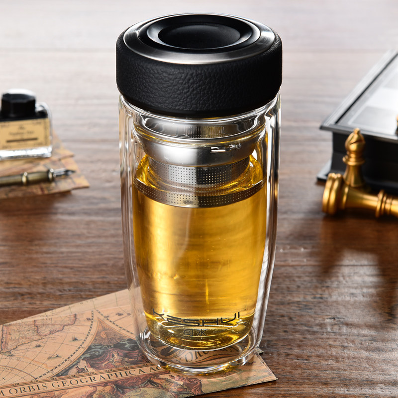 便携保温随手防摔水晶双层玻璃杯