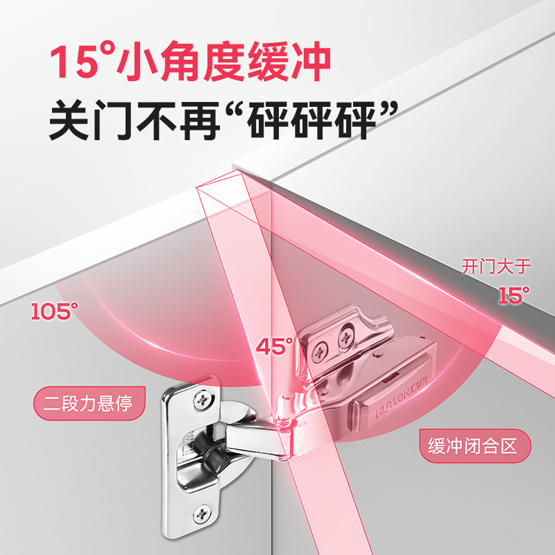 汇泰龙 二段力304不锈钢铰链合页阻尼衣柜橱柜门飞机弹簧液压缓冲