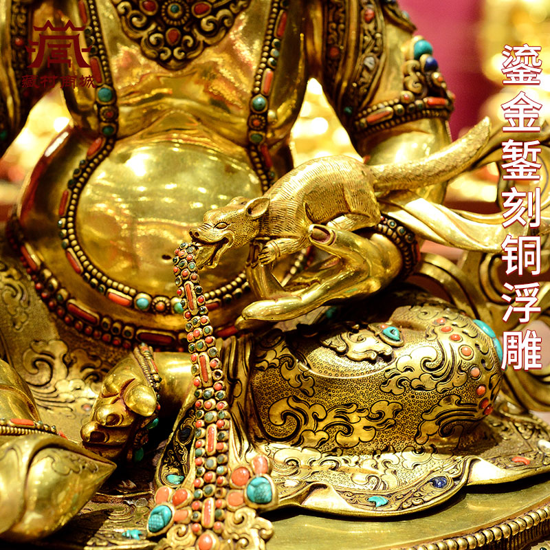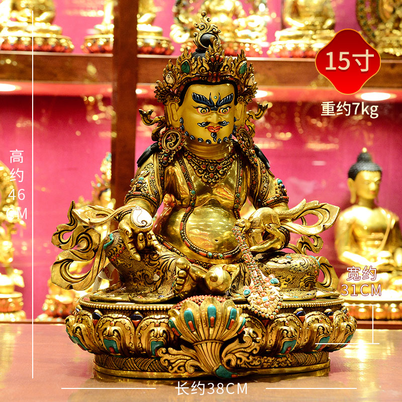 藏村全鎏金尼泊尔进口《黄财神》释迦族手工制作《五姓财神》铜像