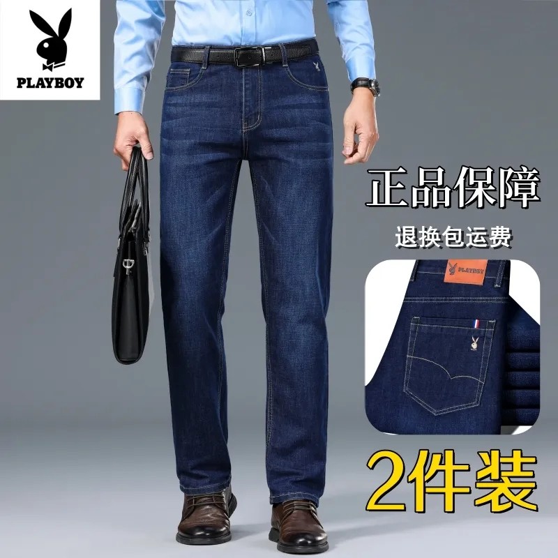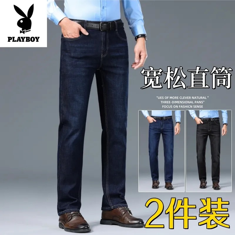 花花公子男士夏季薄款牛仔裤宽松直筒男士中年爸爸休闲男装长裤子