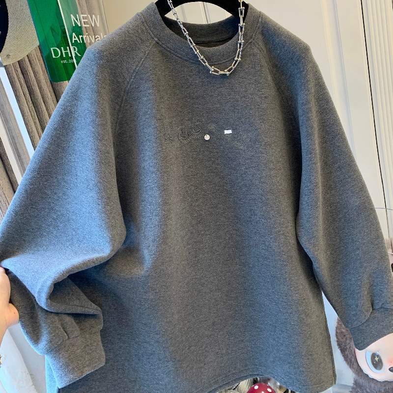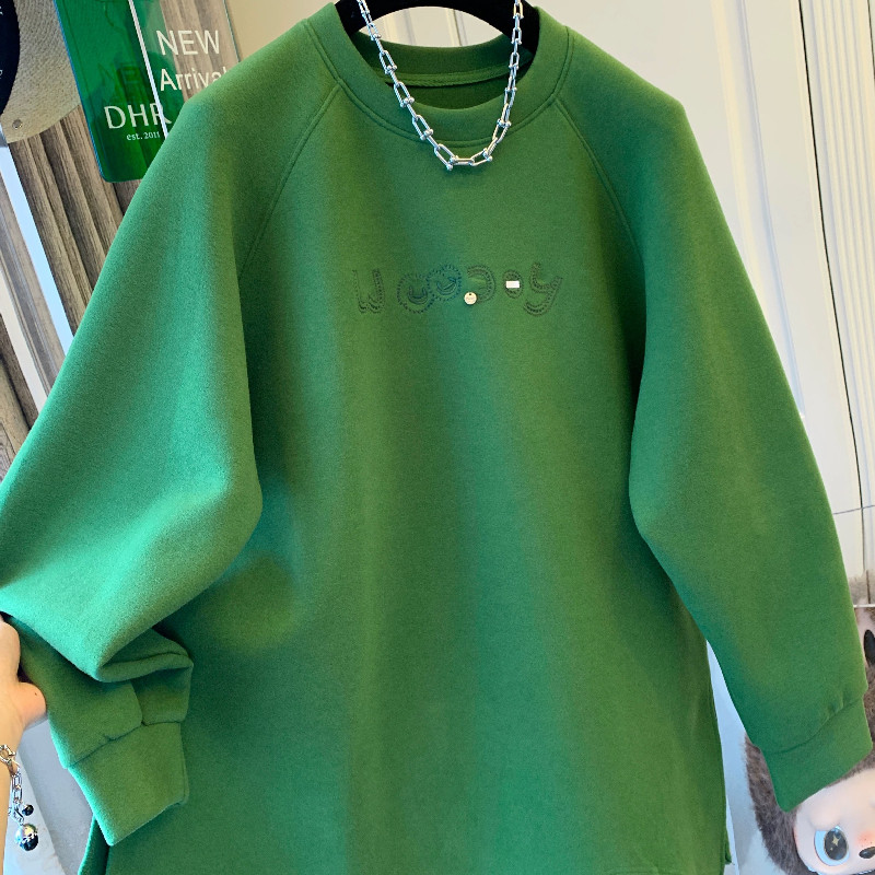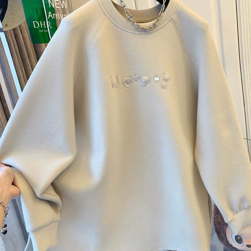 胖妹妹大码300斤刺绣加绒加厚卫衣女秋冬新款显瘦遮肚子保暖上衣