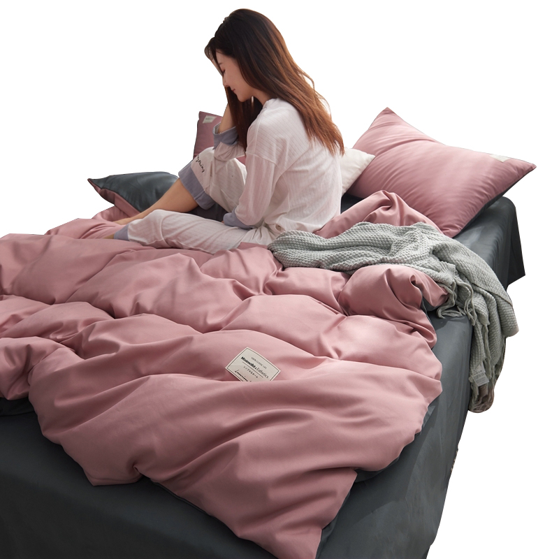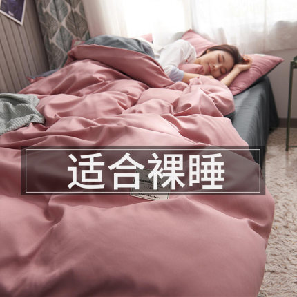 春秋纯色磨毛四件套床上用品被套床单学生宿舍单S人双拼夏季三件