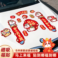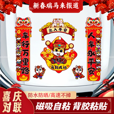 2026马年磁吸车对联创意春联汽车迷你对联车贴油箱盖车尾装饰贴