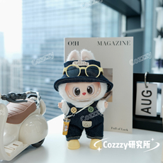 Labubu 3.0前方高能潮流娃衣牛仔包含帽子鞋子17cm搪胶盲盒挂件