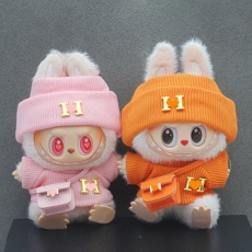 17cm搪胶公仔毛绒玩labubu可爱娃衣挂件拉布布钥匙扣爱心小熊帽子