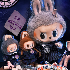 新品17cm拉布布星期三校服条纹娃衣38厘米labubu搪胶公仔挂件衣服