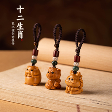 檀木十二生肖钥匙扣鼠牛虎兔蛇马羊猴鸡狗猪龙本命年汽车平安挂件