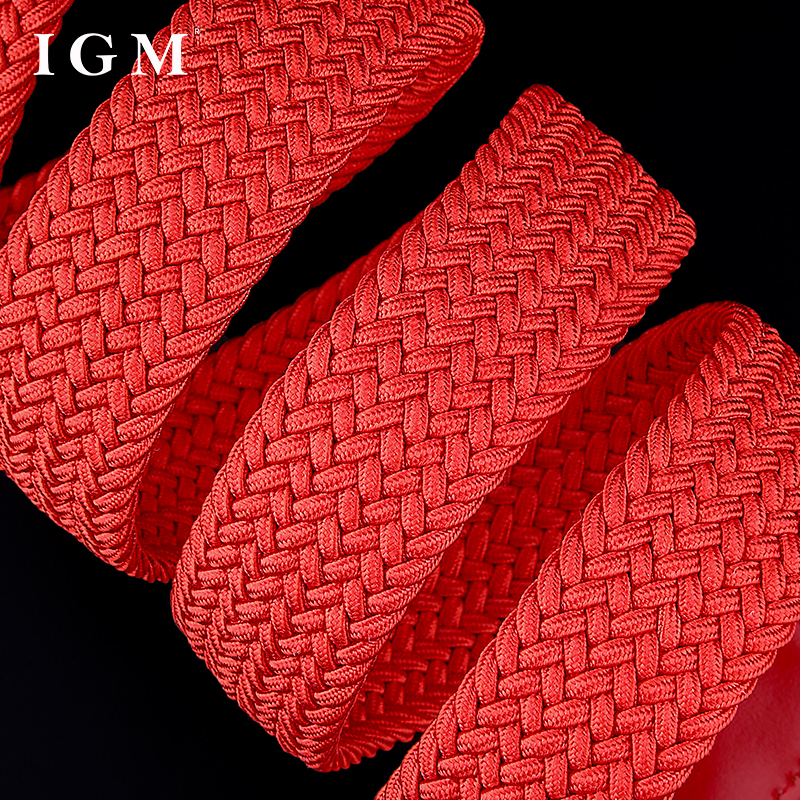 2025本命年红腰带 男女红色编织帆布皮带 百搭牛仔裤无孔弹力裤带
