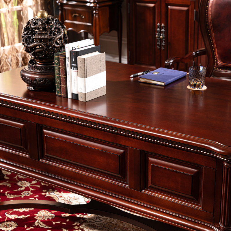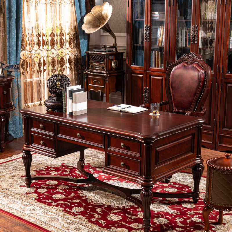 美式全实木简约书桌家用带抽屉写字桌卧室书房办公桌电脑桌椅组合