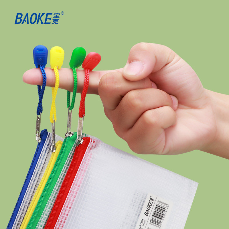 宝克pvc网格拉链袋文件袋透明防水加厚学生办公分类票据收纳袋