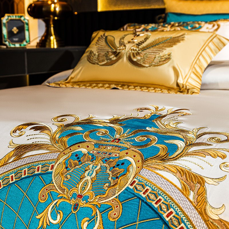 全棉欧式床上用品四六件套纯棉古典风绣花床单被套1.8床十件套件