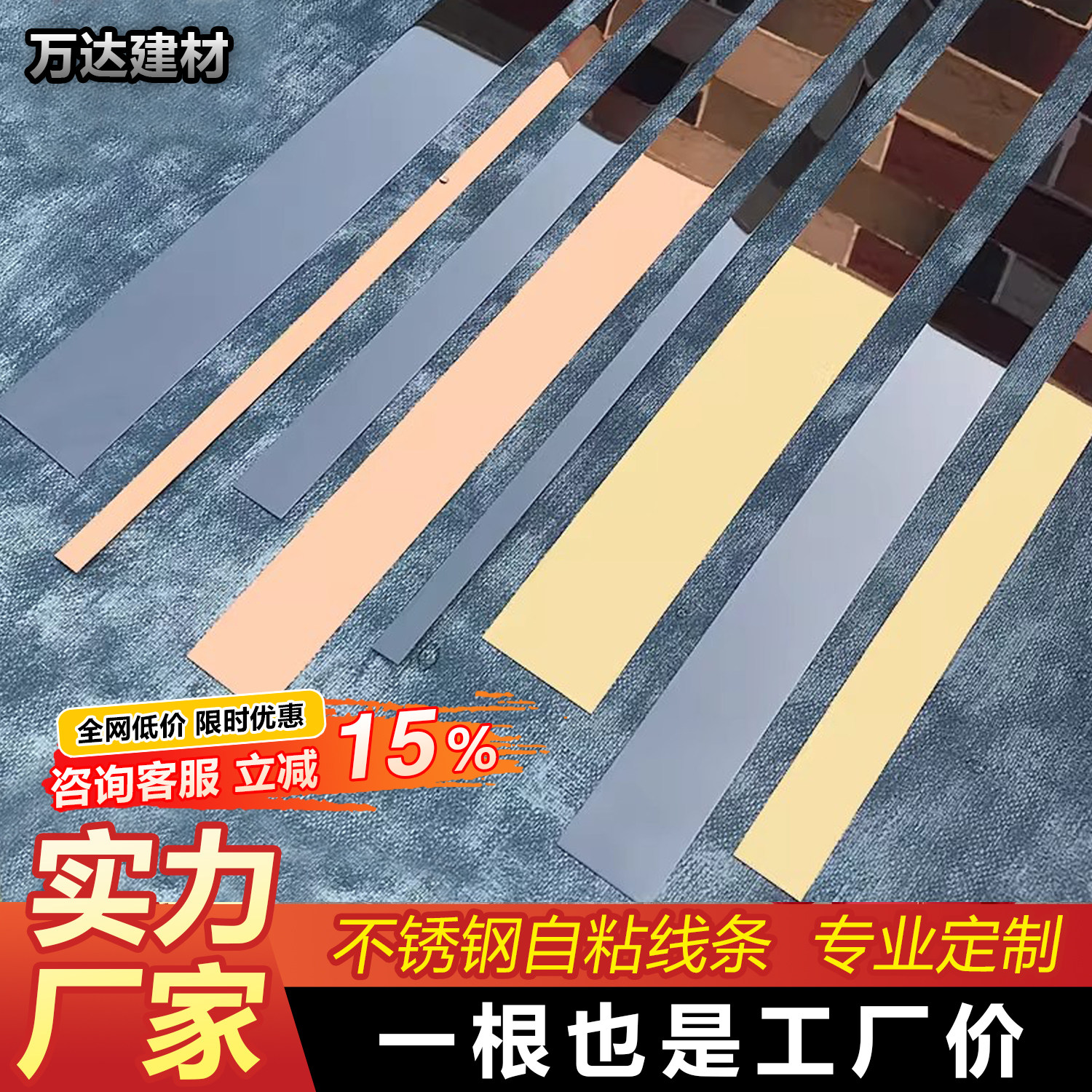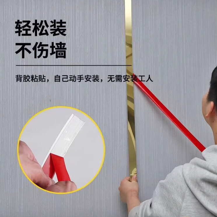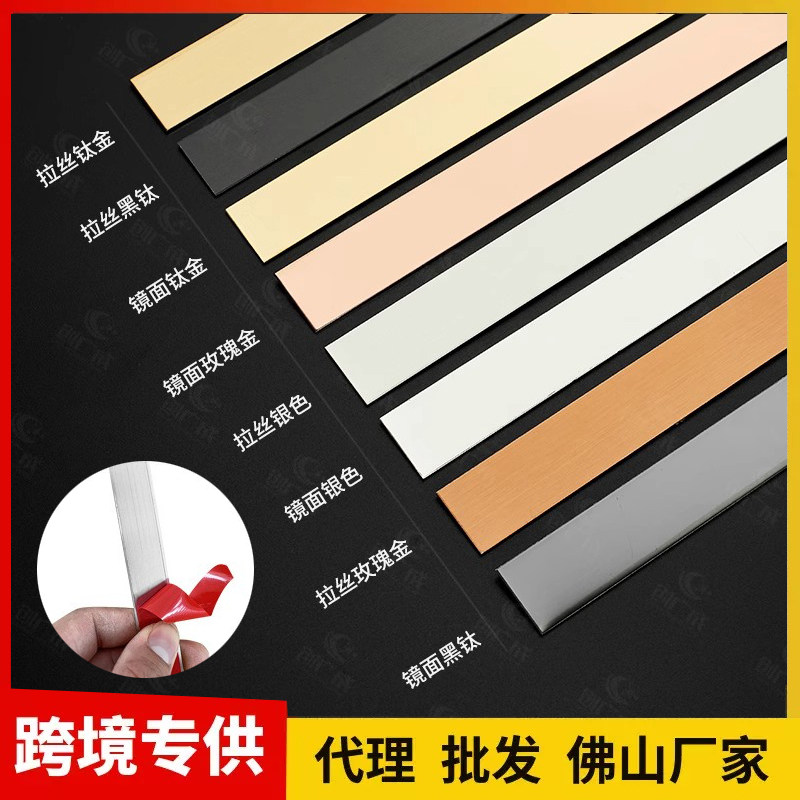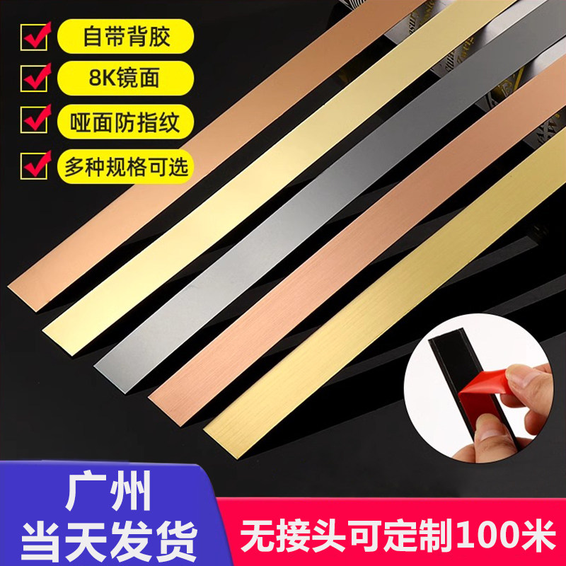 自粘金属装饰条背景墙吊顶收边条免打孔防水不锈钢平板装饰线条