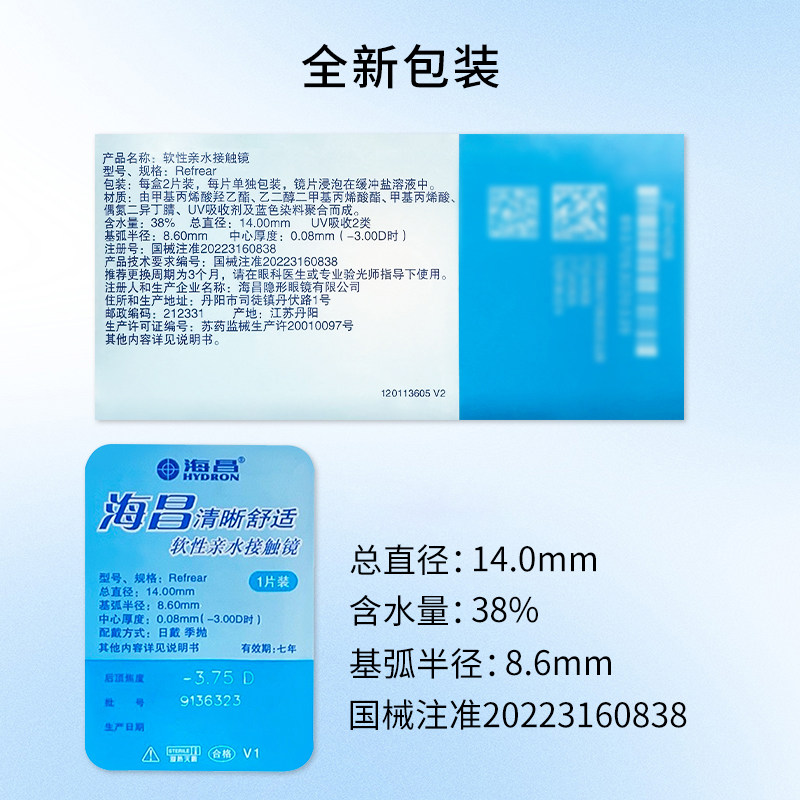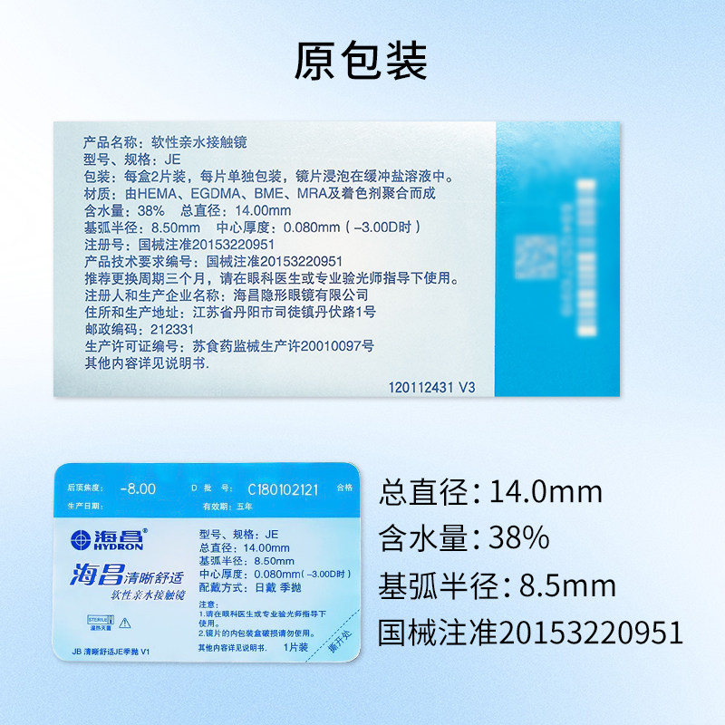 海昌隐形近视眼镜季抛2片水凝胶透明镜片旗舰店官网正品3月抛7xx