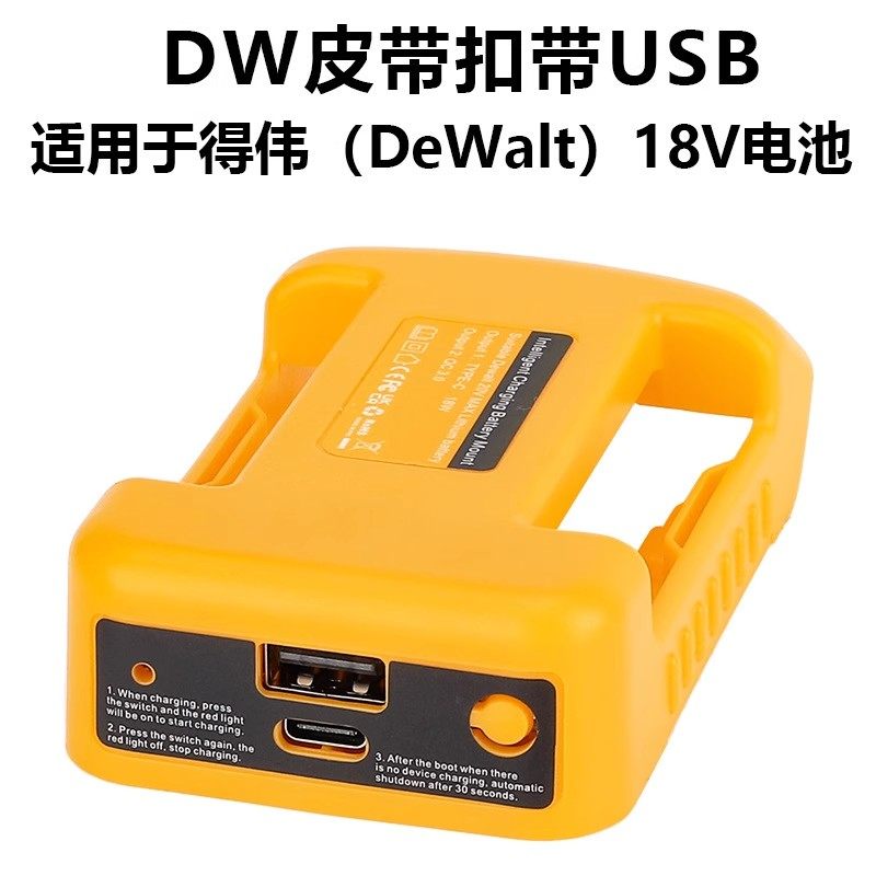 适配牧田得伟米沃奇支持USB Type-c充电皮带扣18V20V锂电池支架