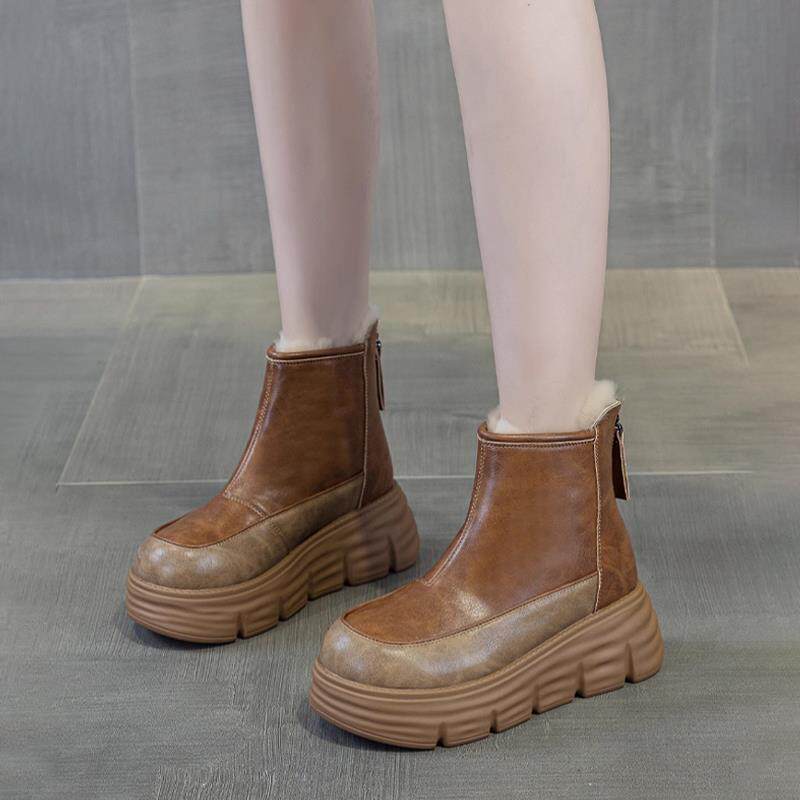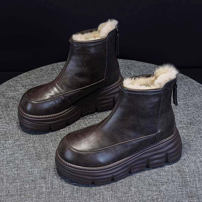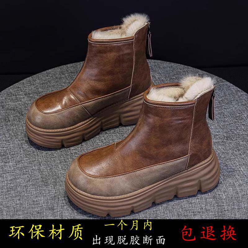 ABC真皮女童雪地靴2025冬季新款儿童大棉加绒加厚东北棉鞋马丁靴