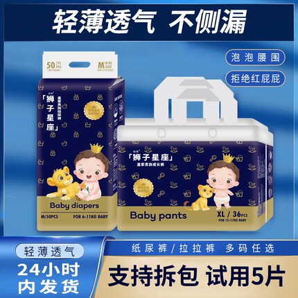 皇家狮子拉拉裤纸尿裤轻薄透气新生儿尿不湿男女宝宝婴儿试用装