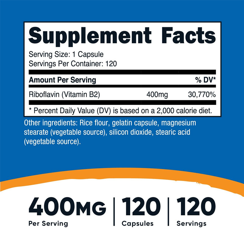 维生素B2大含量400mg核黄素美国Nutricost Vitamin B2补充剂营养