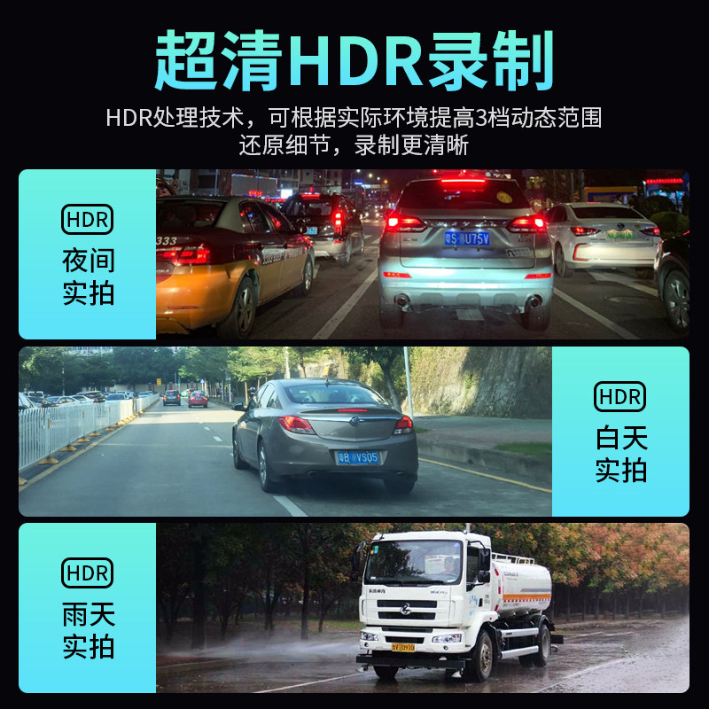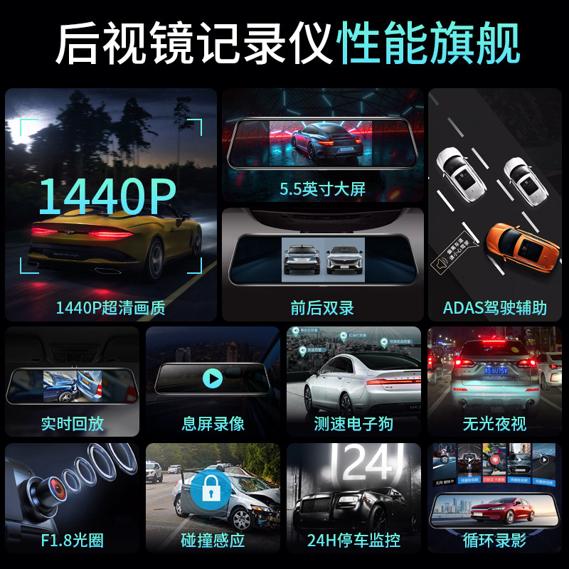 爱国者新款行车记录仪电子狗倒车影像前后双录大触屏后视镜免安装