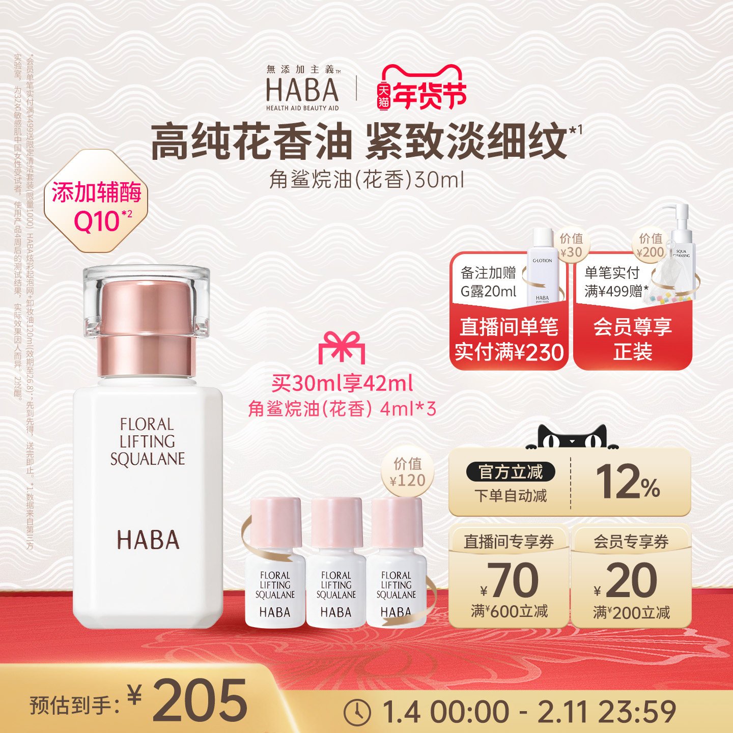 HABA花香精华油 15/30ml 辅酶Q10补水滋养修护保湿抗皱官方正品