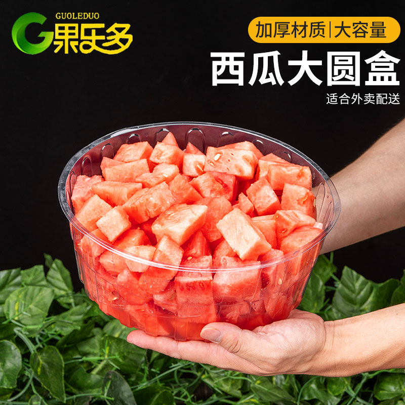 带盖一次性西瓜大圆盒特大号5斤装哈密瓜圆形水果盒鲜果切打包盒