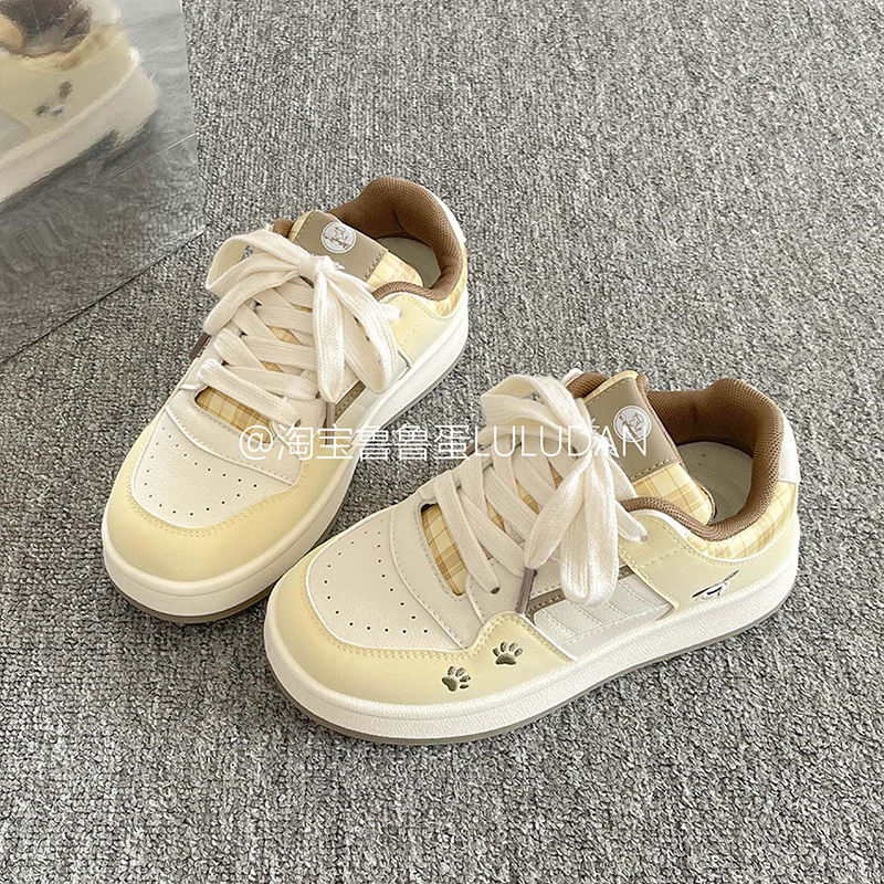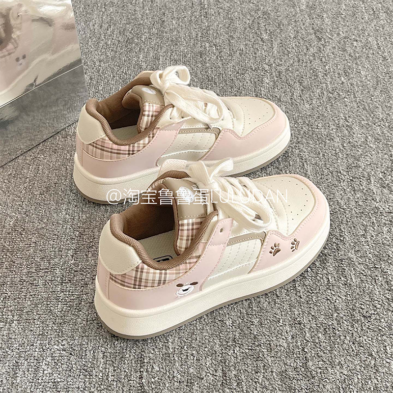 鲁鲁蛋韩系休闲板鞋女款2025新款春秋厚底小白鞋子女鞋百搭面包鞋