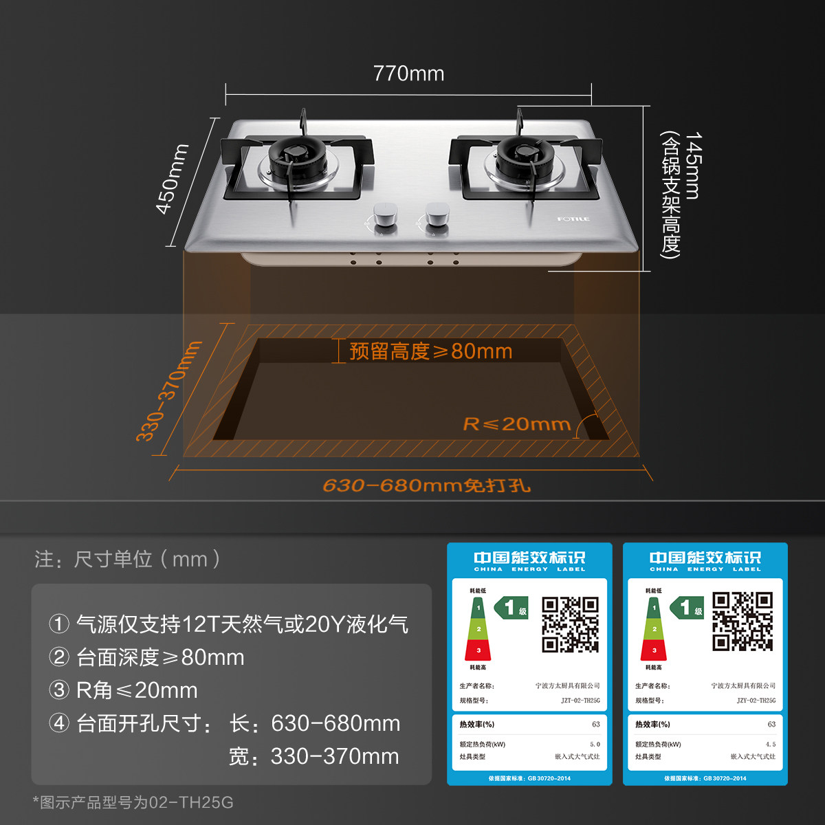 方太02-TH25G不锈钢燃气灶煤气灶双灶台嵌入式灶具
